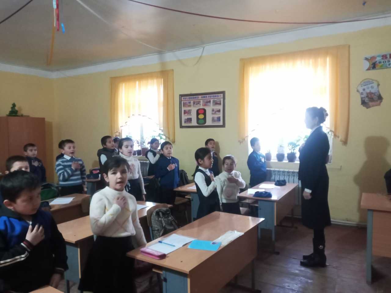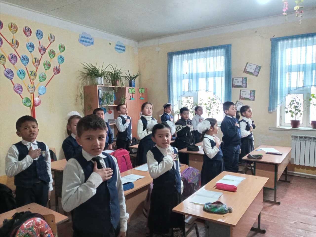 E'lon va tadbirlar 23-02-2024, 13:45 Xorazm viloyati Yangiariq tumani 35-son maktabda birinchi soat darslar O'zbekiston Respublikasi Davlat Madhiyasini kuylash bilan boshlandi.