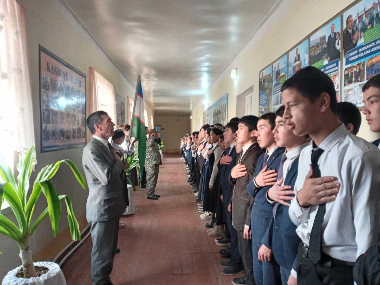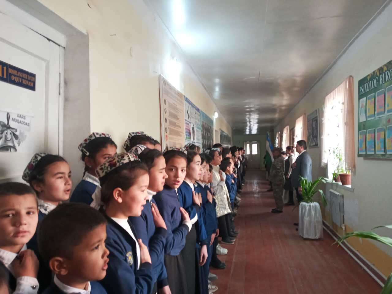 E'lon va tadbirlar 27-02-2024, 11:18 Xorazm viloyati Yangiariq tumani 35-son maktabda ertalabki darslar O'zbekiston Respublikasi Davlat Madhiyasini kuylash bilan boshlandi.