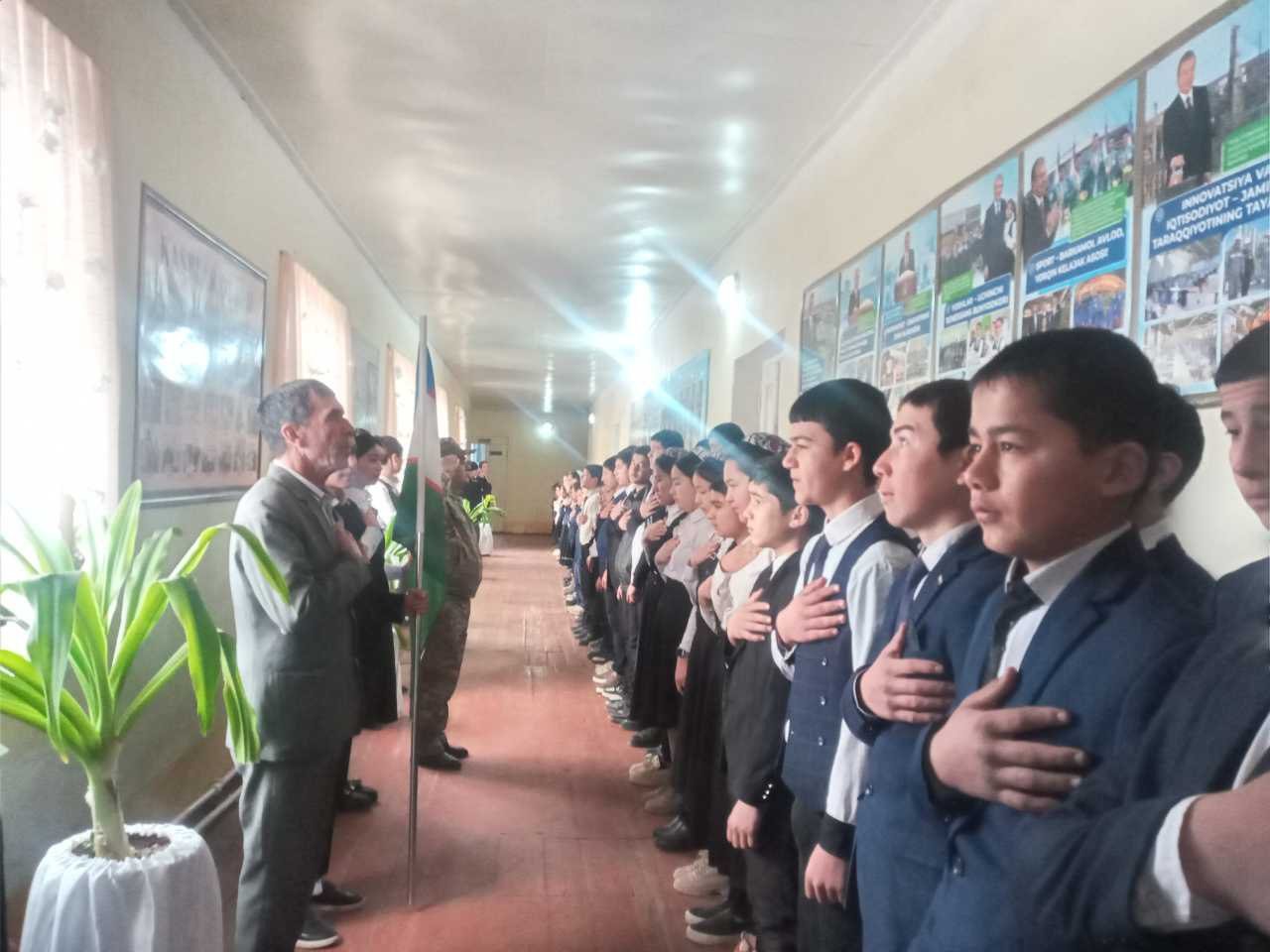 E'lon va tadbirlar 28-02-2024, 11:25 Xorazm viloyati Yangiariq tumani 35-son maktabda birinchi soat darslar O'zbekiston Respublikasi Davlat Madhiyasini kuylash bilan boshlandi.