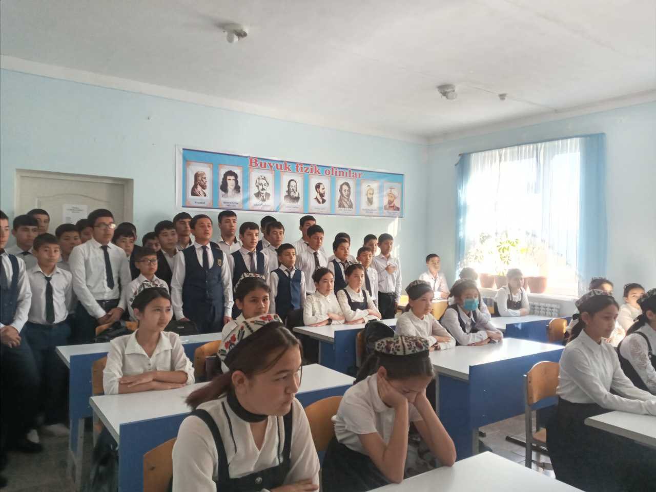 E'lon va tadbirlar 7-05-2024, 11:42 Xorazm viloyati Yangiariq tumanidagi 35-sonli maktabda 7-11-sinf õquvchilari bilan 9-may"Xotira va qadrlash kuni"ga bag'ishlab Katta letenant Sobirov Shahzodbek davra suhbati õtkazdi.