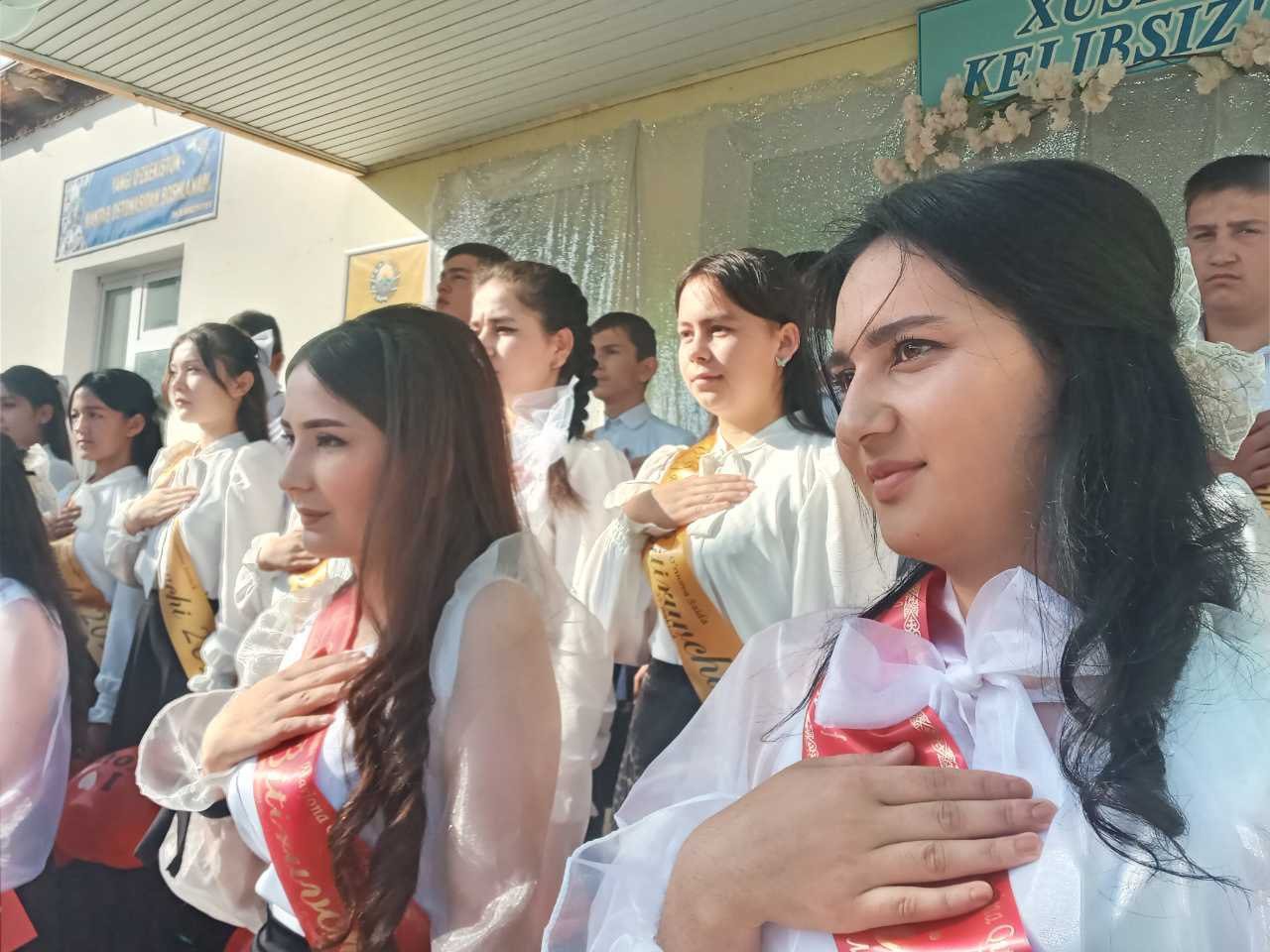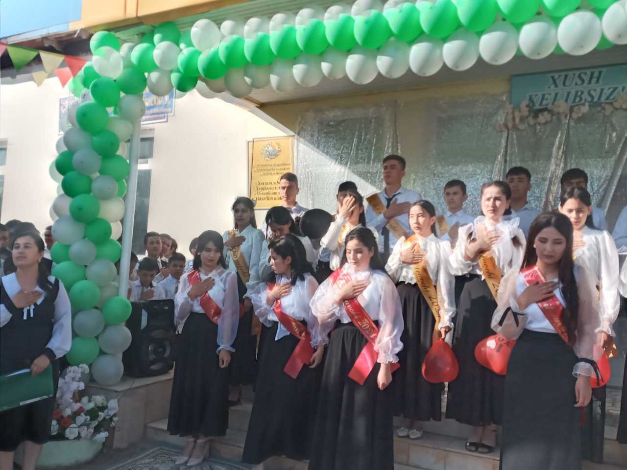 E'lon va tadbirlar 25-05-2024, 11:30 Xorazm viloyati Yangiariq tumani 35-son maktabda birinchi qo'ng'iroq tadbiri O'zbekiston Respublikasi Davlat Madhiyasini kuylash bilan boshlandi.
