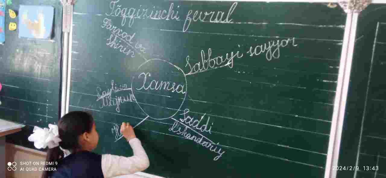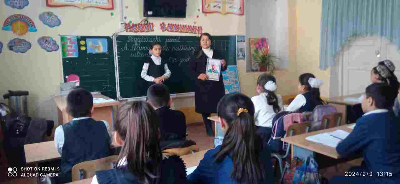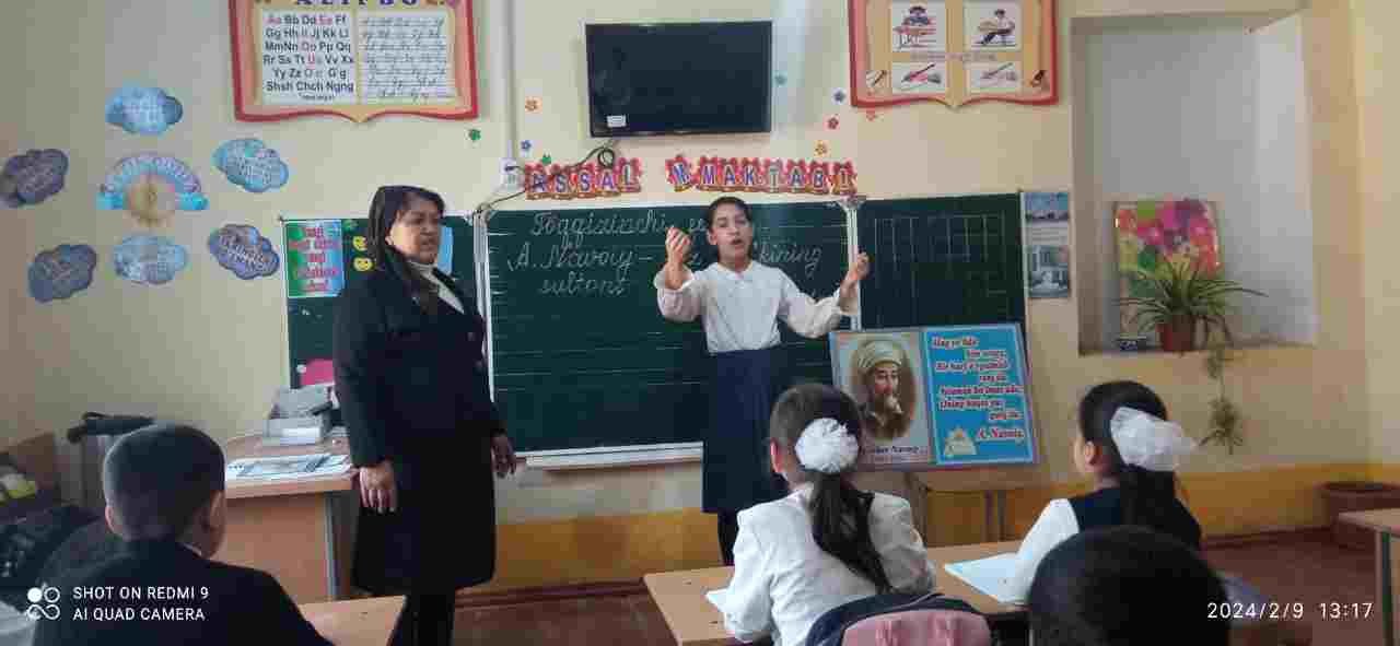 Dars ishlanmalar 10-02-2024, 11:22 angiariq tumanidagi 35-sonli umumiy o'rta ta'lim maktabning 4-sinf rahbari Masharipova Guloraning "A.Navoiy - so'z mulkining sultoni" mavzusida o'tgan ochiq darsidan lavhalar