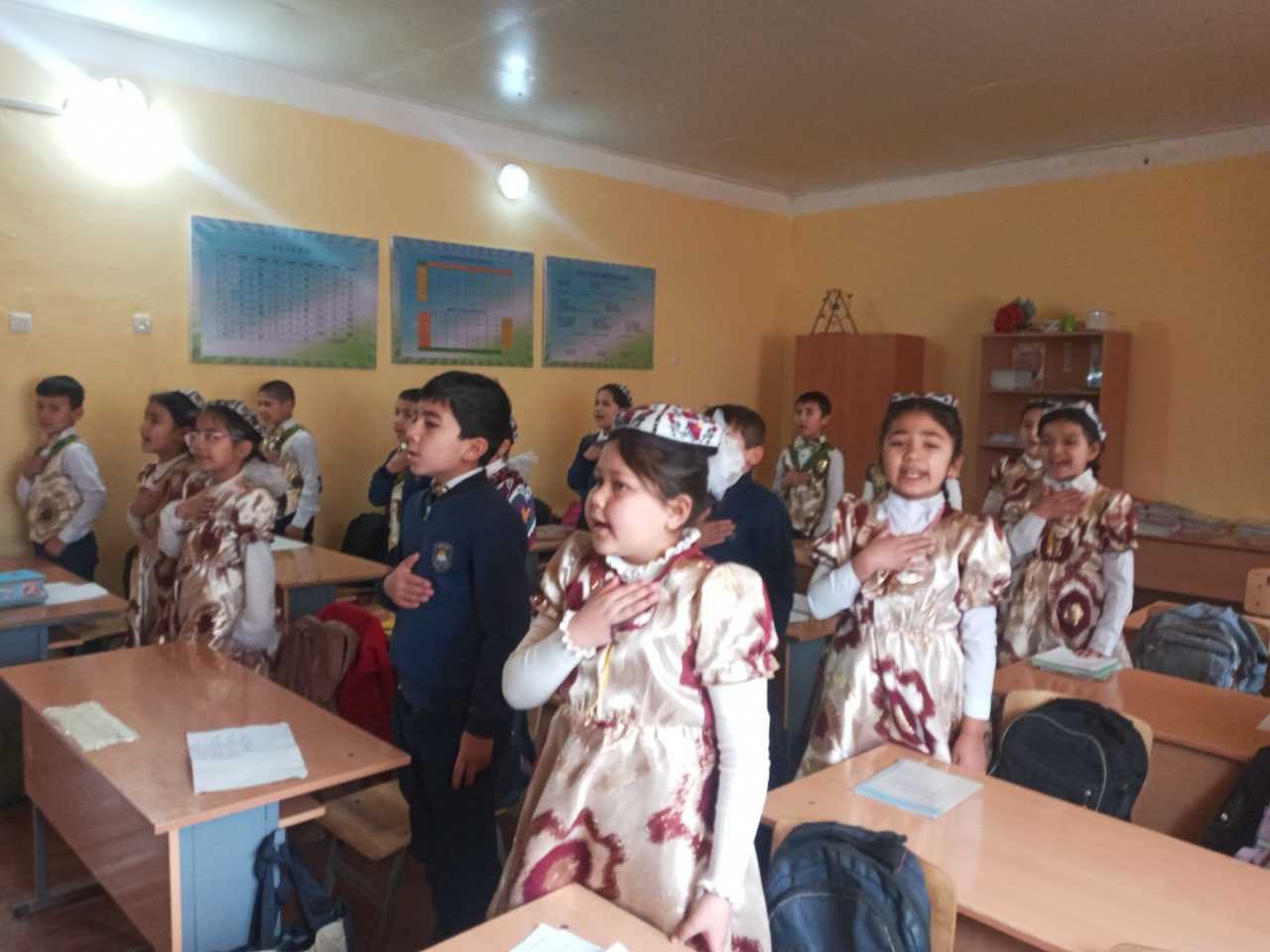 Dars ishlanmalar 1-03-2024, 11:32 Xorazm viloyati Yangiariq tumani 35-son maktabda 2-smena darslar O'zbekiston Respublikasi Davlat Madhiyasini kuylash bilan boshlandi.