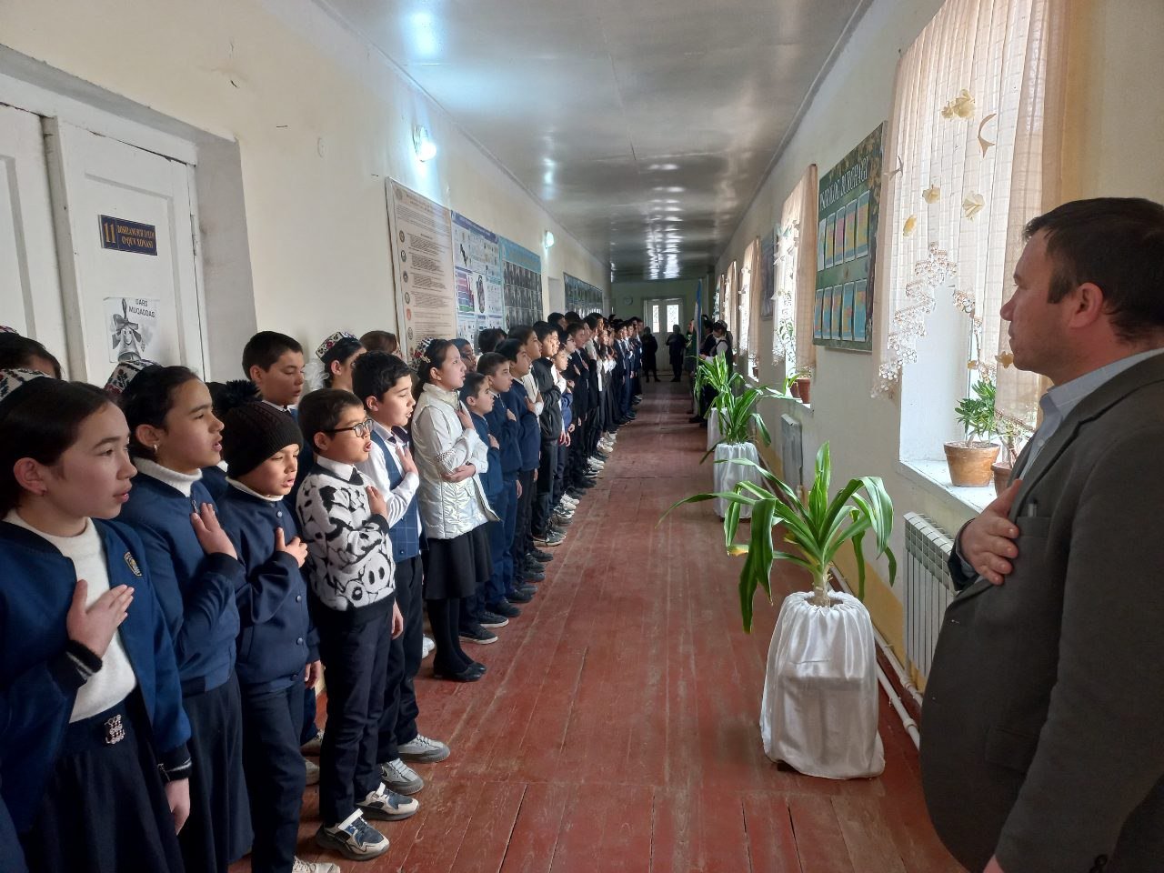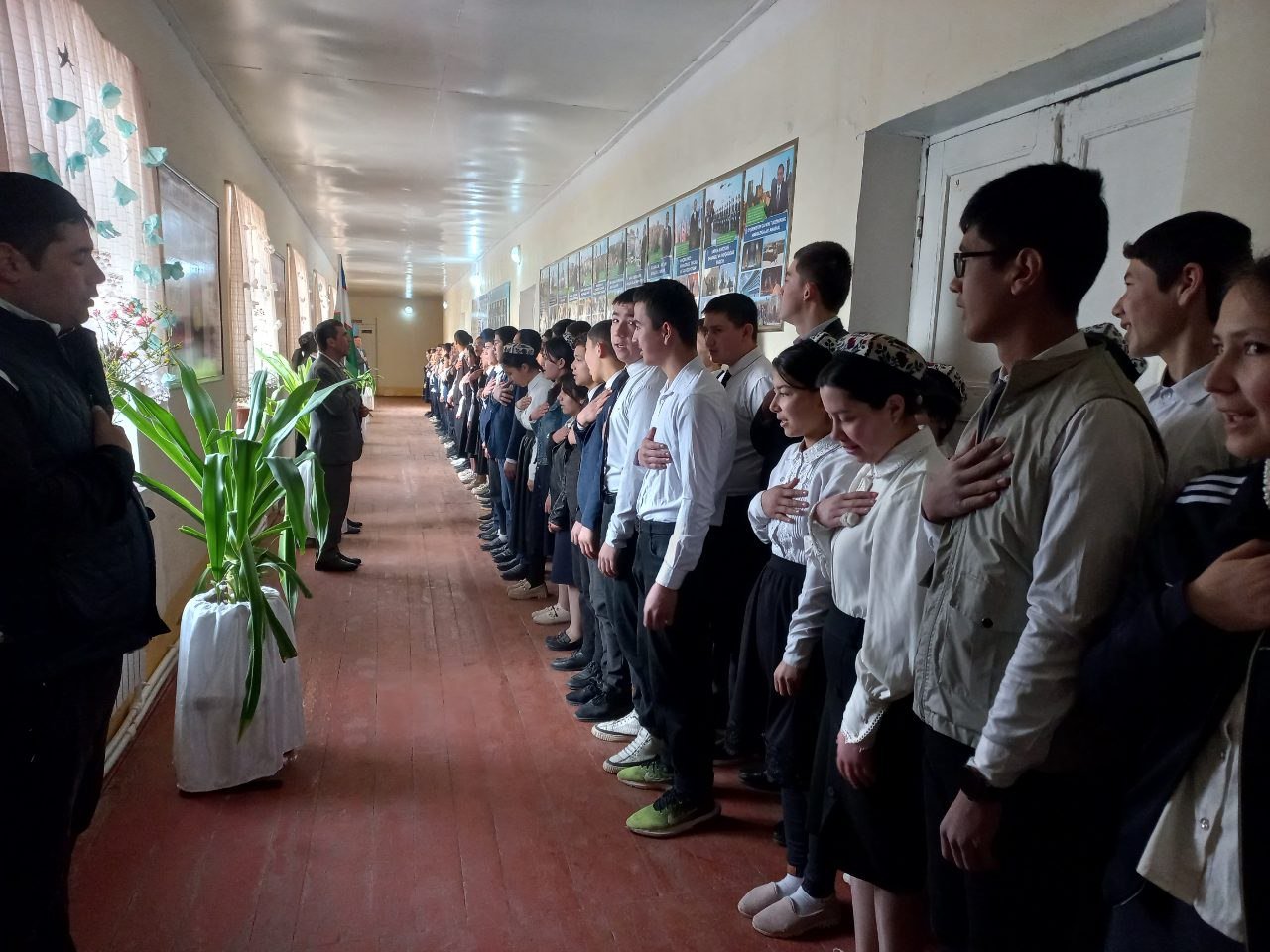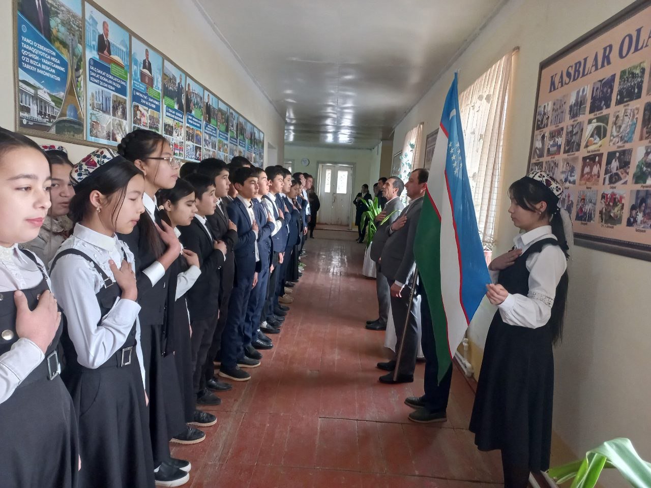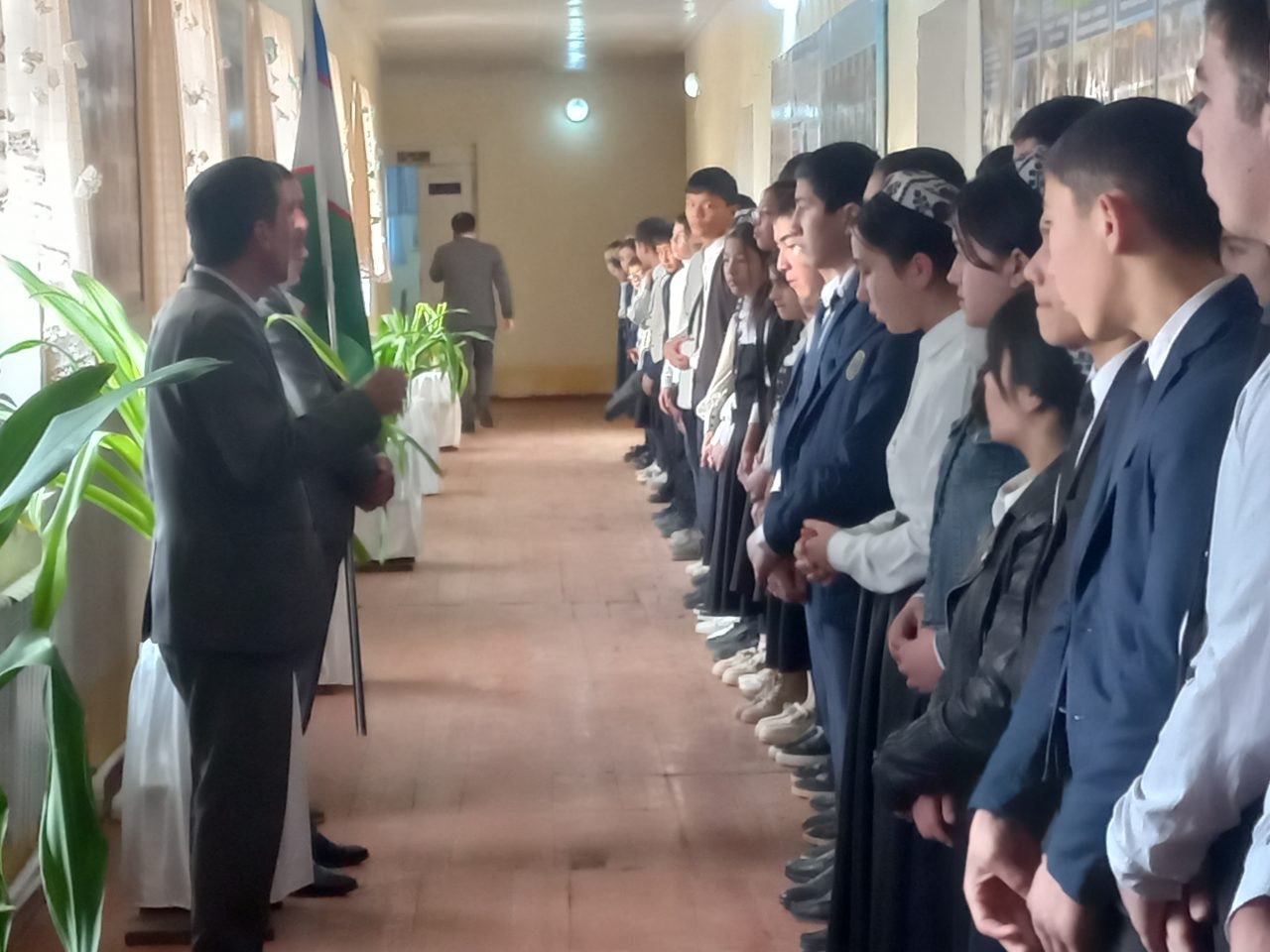 Dars ishlanmalar 2-03-2024, 11:42 Xorazm viloyati Yangiariq tumani 35-son maktabda ertalabki birinchi soat darslar O'zbekiston Respublikasi Davlat Madhiyasini kuylash bilan boshlandi.