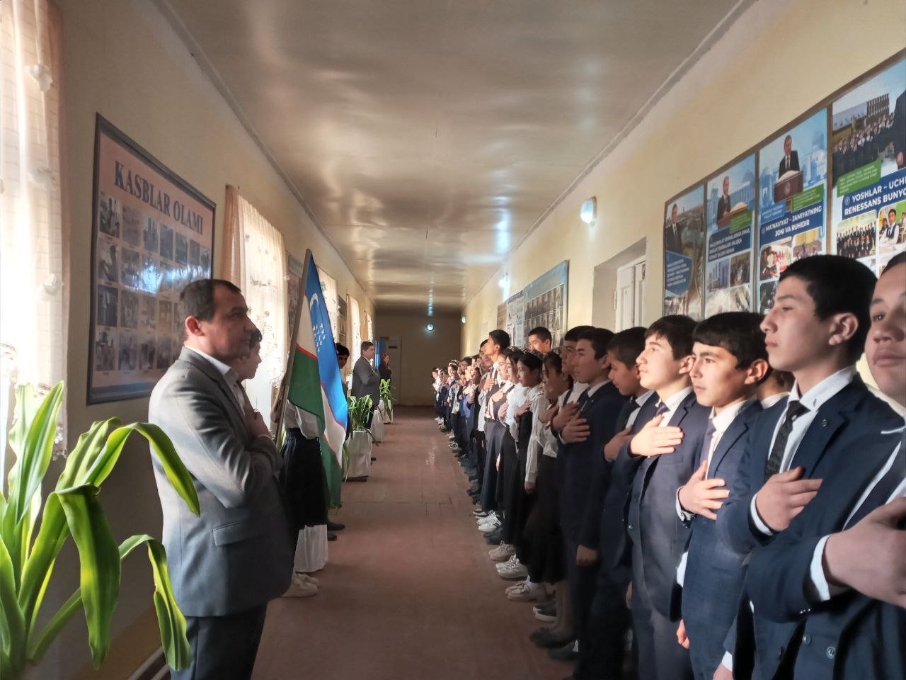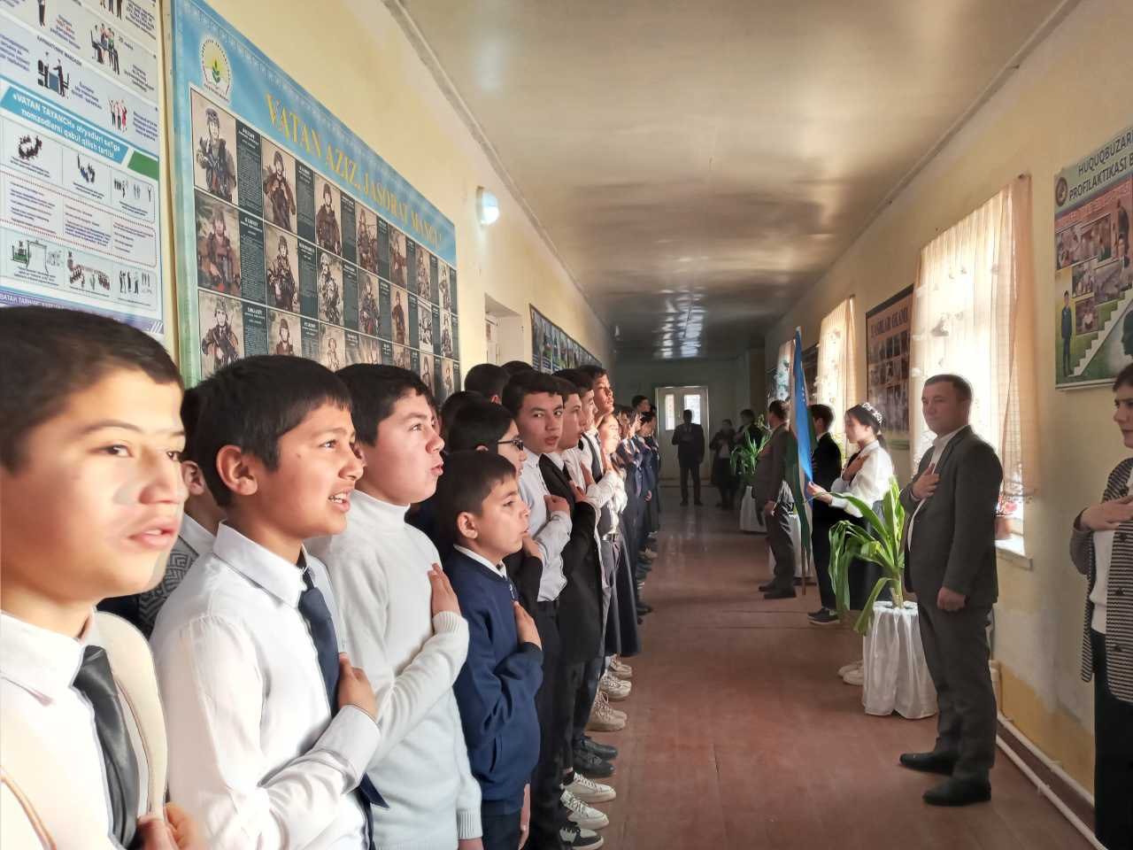 Dars ishlanmalar 5-03-2024, 10:36 Xorazm viloyati Yangiariq tumani 35-son maktabda ertalabki darslar O'zbekiston Respublikasi Davlat Madhiyasini kuylash bilan boshlandi.