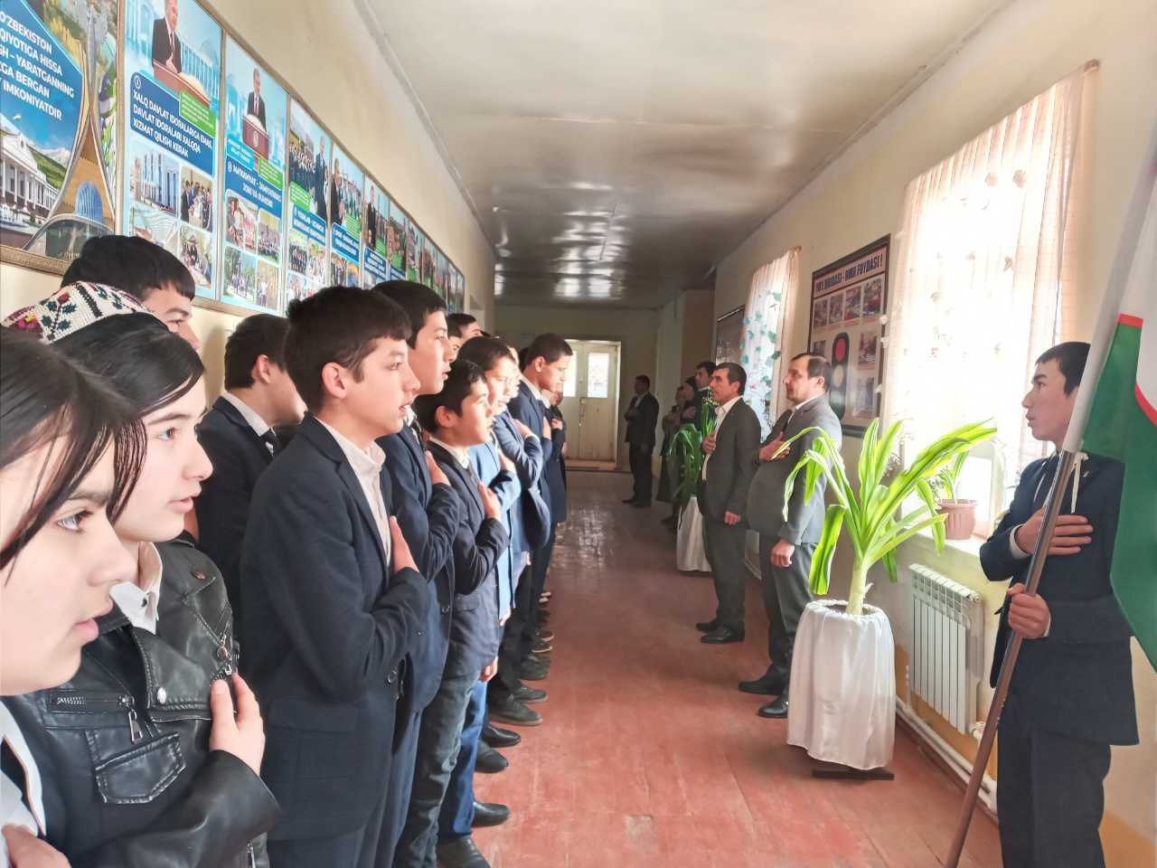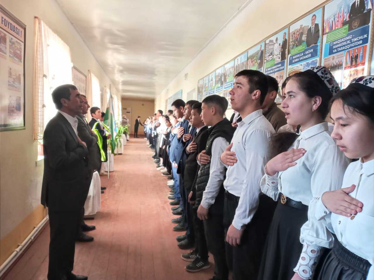 Dars ishlanmalar 14-03-2024, 10:22 Xorazm viloyati Yangiariq tumani 35-son maktabda birinchi soat darslar O'zbekiston Respublikasi Davlat Madhiyasini kuylash bilan boshlandi.