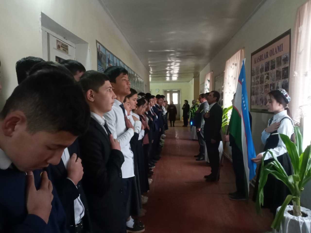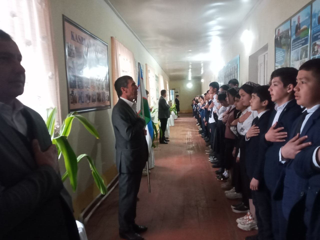 Dars ishlanmalar 12-03-2024, 10:31 Xorazm viloyati Yangiariq tumani 35-son maktabda birinchi soat darslar O'zbekiston Respublikasi Davlat Madhiyasini kuylash bilan boshlandi