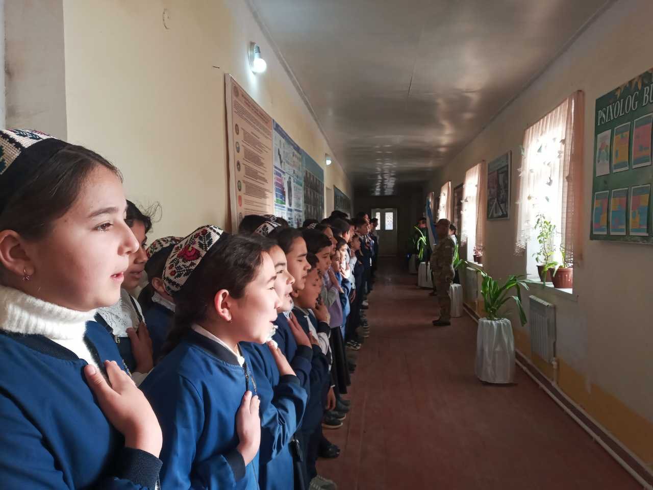 Dars ishlanmalar 18-03-2024, 09:36 Xorazm viloyati Yangiariq tumani 35-son maktabda birinchi soat darslar O'zbekiston Respublikasi Davlat Madhiyasini kuylash bilan boshlandi.
