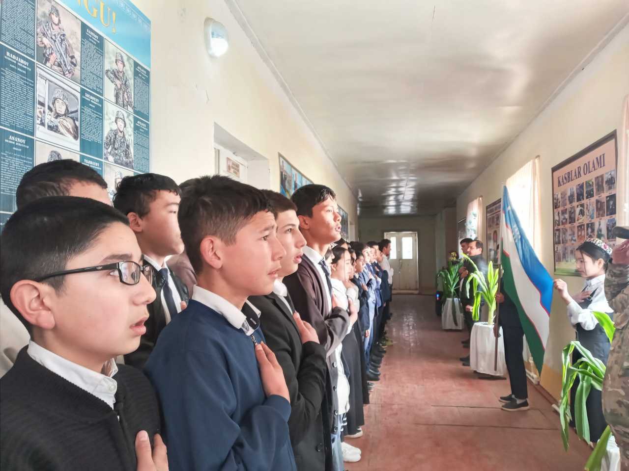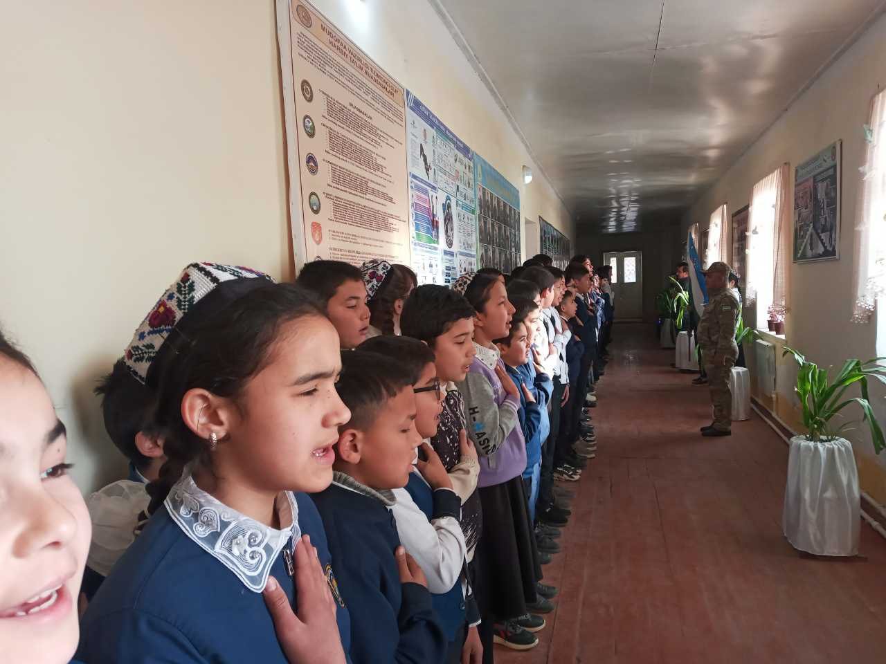 Dars ishlanmalar 16-03-2024, 09:46 Xorazm viloyati Yangiariq tumani 35-son maktabda birinchi soat darslar O'zbekiston Respublikasi Davlat Madhiyasini kuylash bilan boshlandi.