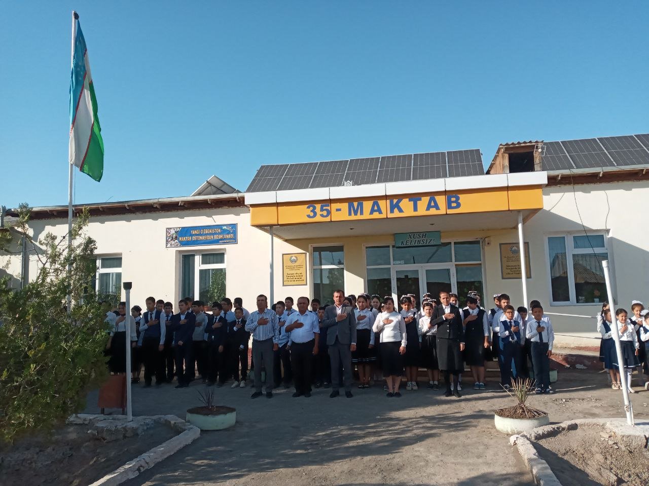 Dars ishlanmalar 30-04-2024, 09:38 Xorazm viloyati Yangiariq tumani 35-son maktabda birinchi soat darslar O'zbekiston Respublikasi Davlat Madhiyasini kuylash bilan boshlandi.