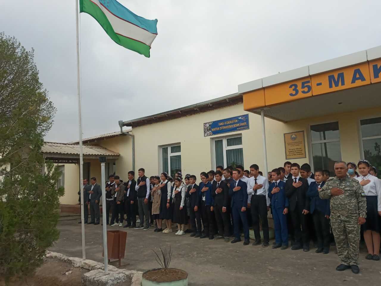To'garaklar jadvali 8-04-2024, 09:07 Xorazm viloyati Yangiariq tumani 35-son maktabda birinchi soat darslar O'zbekiston Respublikasi Davlat Madhiyasini kuylash bilan boshlandi.