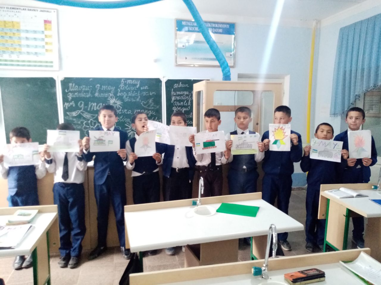 To'garaklar jadvali 8-05-2023, 10:50 Yangiariq tuman 35-son maktabning 5-may kuni bo'lib o'tgan besh tashabbus doirasida 9-may xotira va qadrlash kuniga bag'ishlab o'tkazilgan rasmlar tanlovidan lavhalar